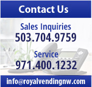 Welcome to Royal VendingPortland Vending Machines and Office Coffee Service Royal Vending is Portland, Oregon's vending provider of choice for more than 10 years. We offer vending machines, micro-markets, soda, beverages, vending, vending snacks, office coffee or office coffee service, coke vending machines, Pepsi vending machines, and food vending machines. Royal Vending is the largest locally owned family vending business that is fully licensed, insured and provides quality service for the Portland, OR area. ![]()